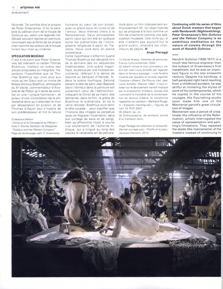 GOLTZIUS ET LA COMPAGNIE DU PÉLICAN, UN FILM DE PETER GREENAWAY -ART PRESS N° 404