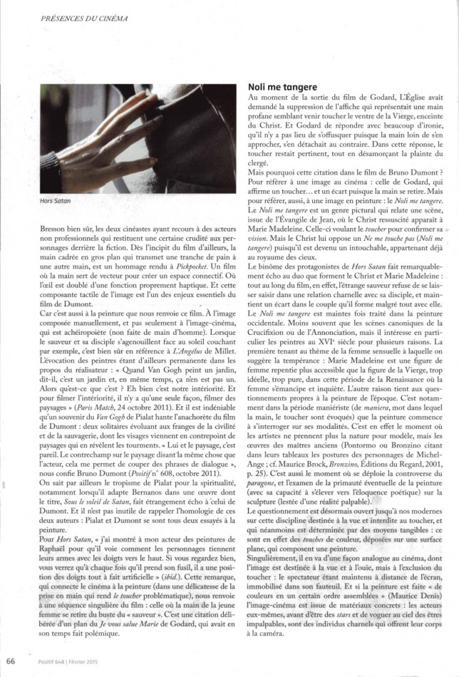 HORS SATAN: LE TOUCHER DANS L’IMAGE -POSTIF N°648 FÉVRIER 2015