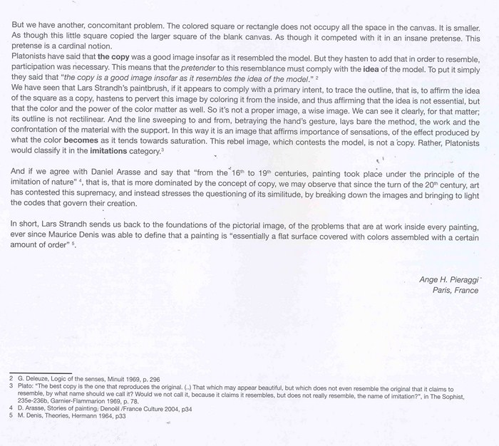 PRÉSENTATION DE L’OEUVRE DE LARS STRANDH, CATALOGUE OSLO (TEXTE EN FRANÇAIS)