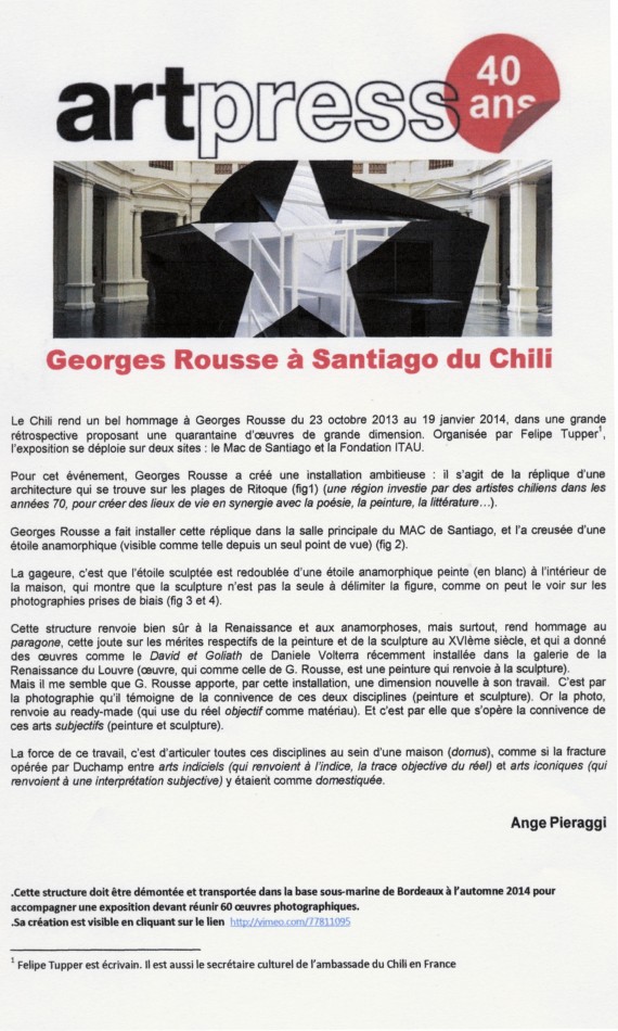 • « GEORGES ROUSSE, UNE PERSPECTIVE PARADOXALE », ART PRESS N°380, JUILLET-AOÛT 2011